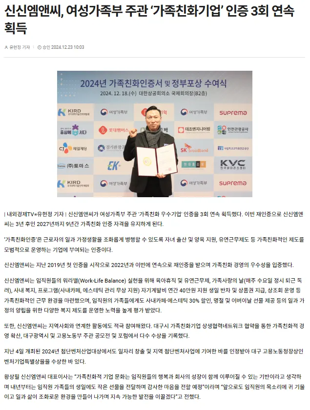 업계 최초 CCM (소비자중심경영) 2연속 인증 기업