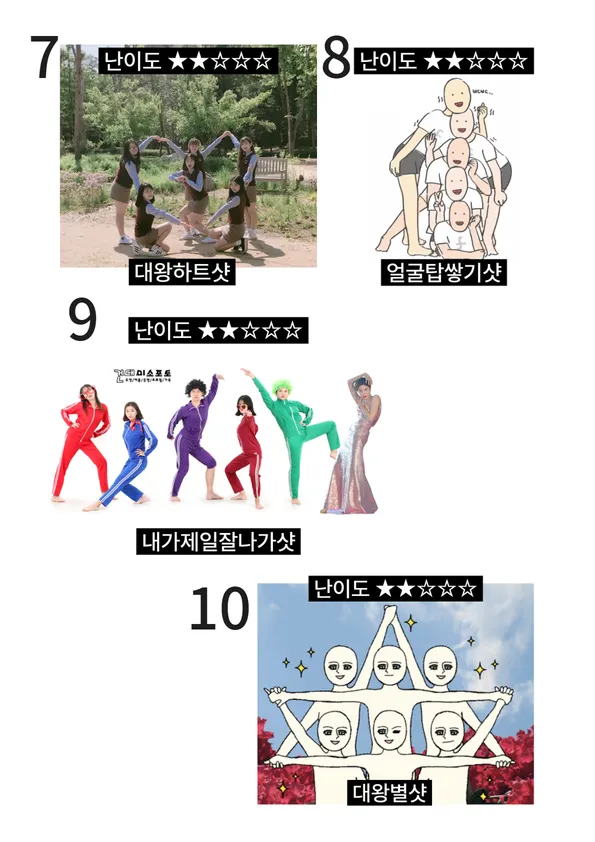 위 보기 사진들 중 랜덤으로 고른 사진을 팀원들끼리 그대로 재연해야하는
