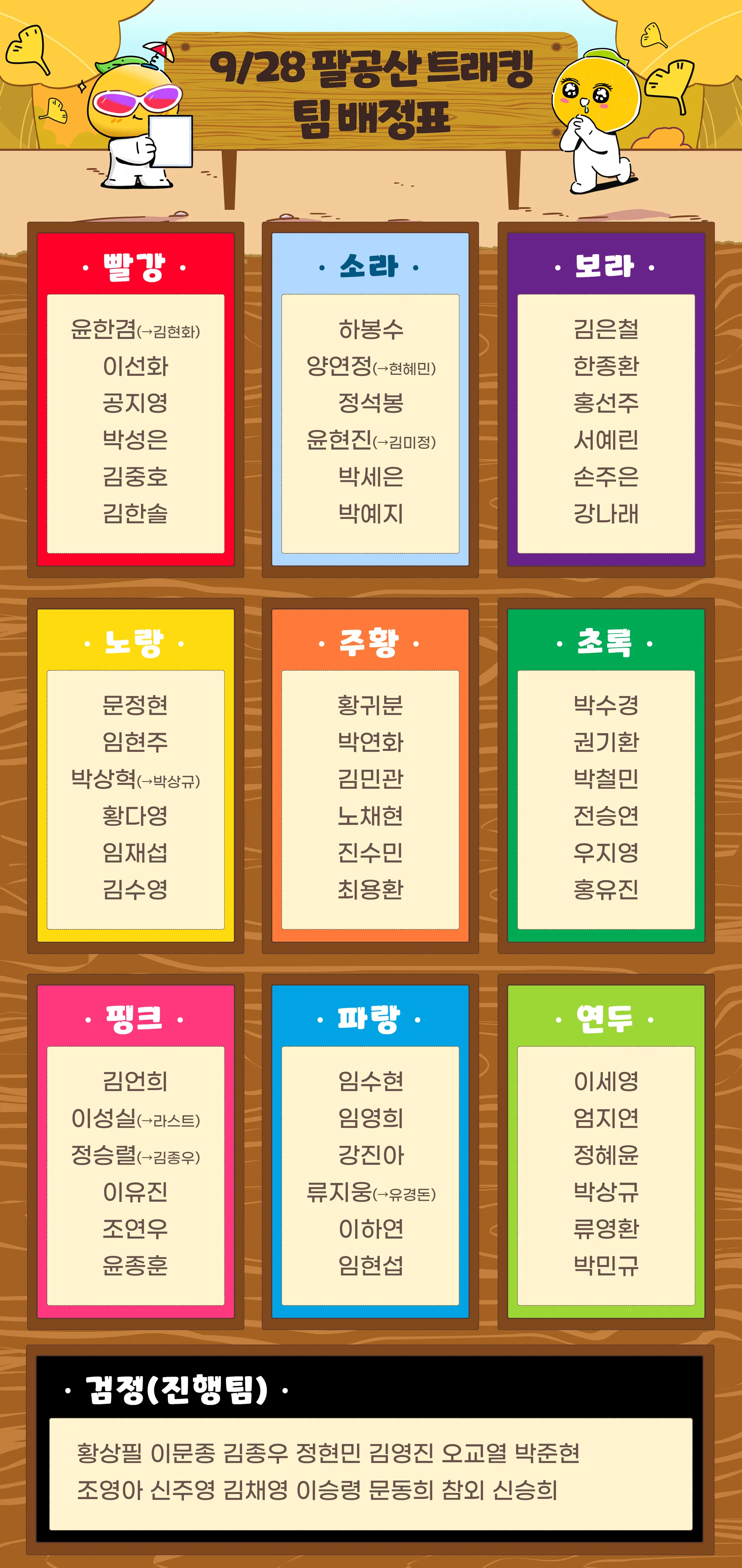 색깔별로 팀을 나눠서 어렵지않게 팀 복도 맞출 수 있었답니다