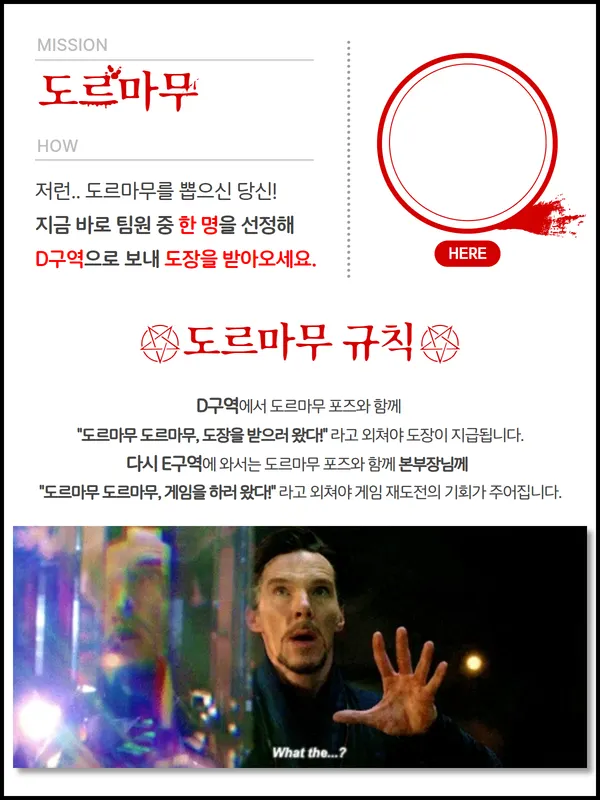 팀 대표 한 명이 다시 D구역으로 돌아가 도장을 받아와야만했던ㅋㅋㅋㅋㅋㅋ