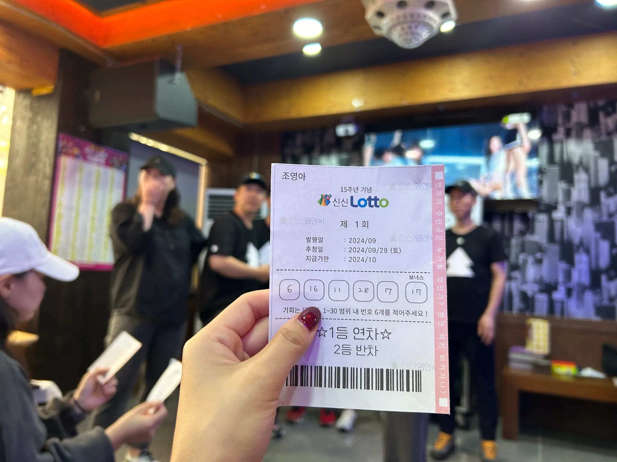 로또 뽑기통에서 다시 한 번 번호를 뽑아서는 의자 밑에 부착된 번호 스티커를 확인해보라시던