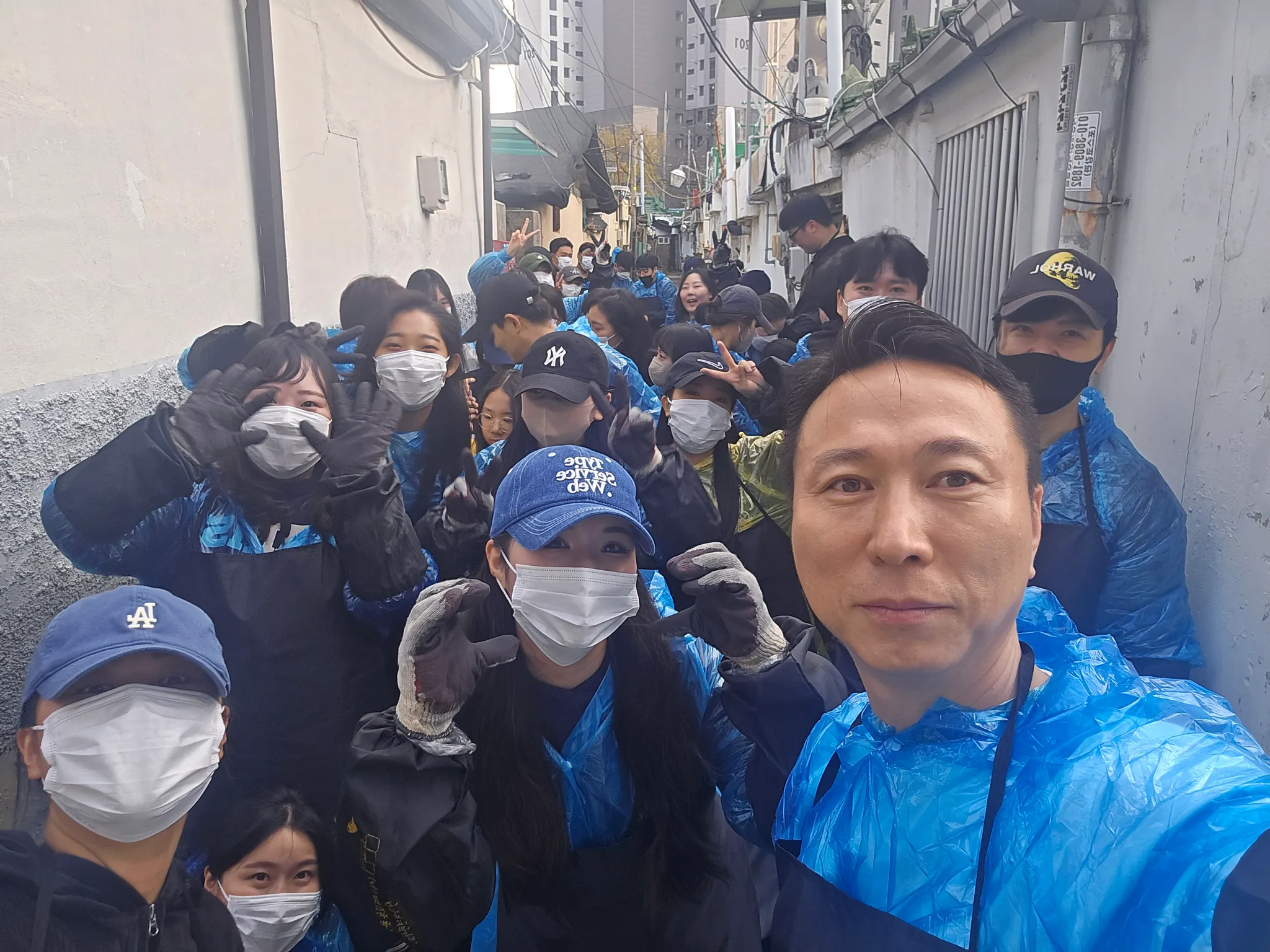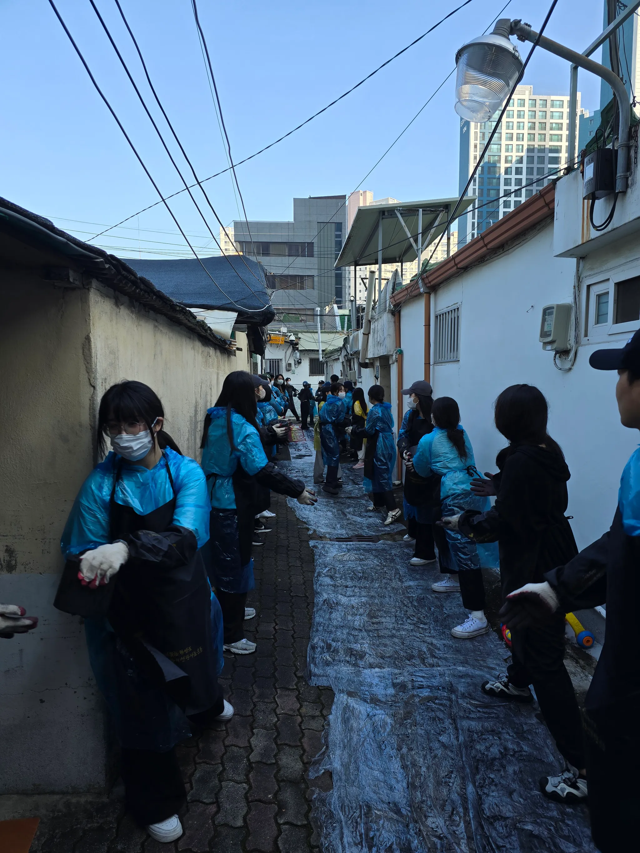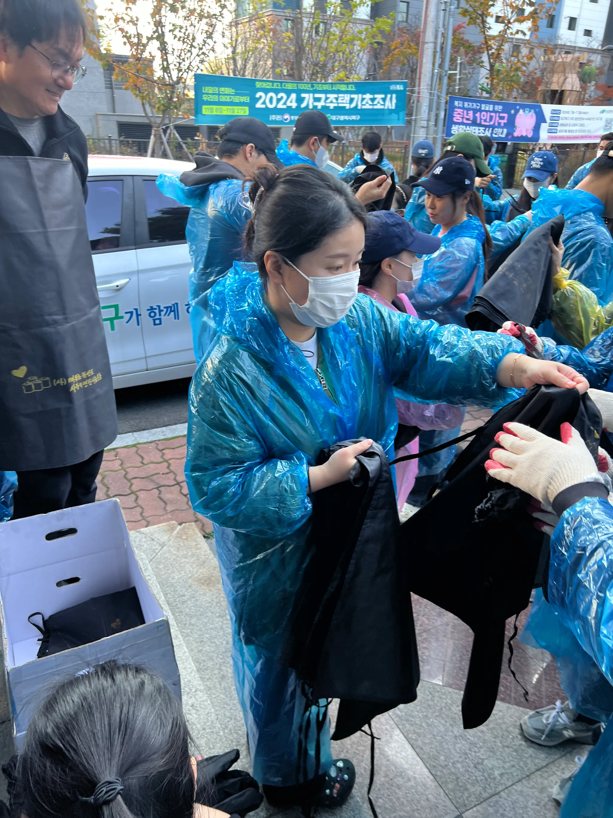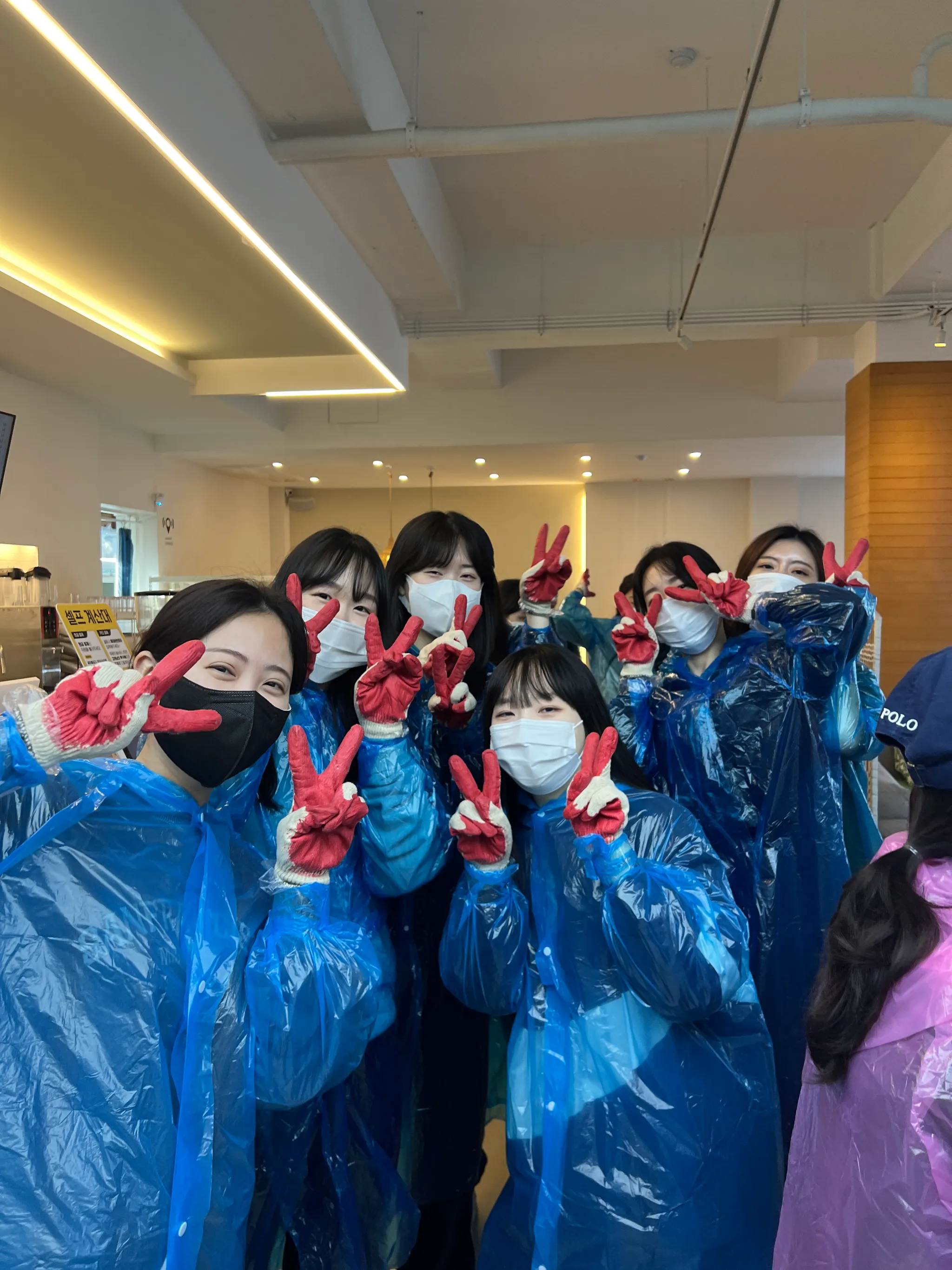 봉사 현장에 도착해 앞치마와 팔토시까지 착용하여