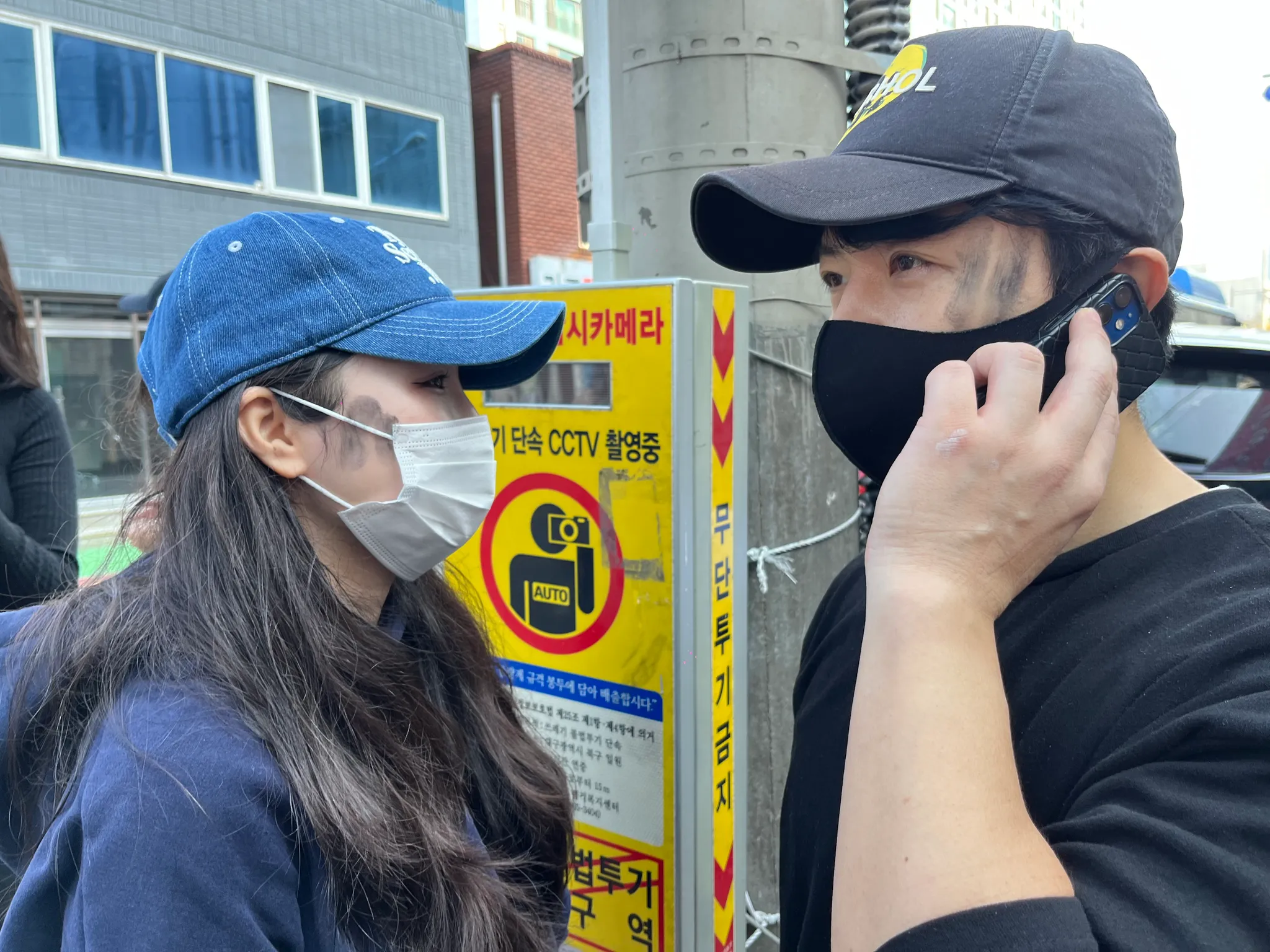 박차장님의 얼굴의 연탄 가루를 손수 닦아주시는 오부장님^^
