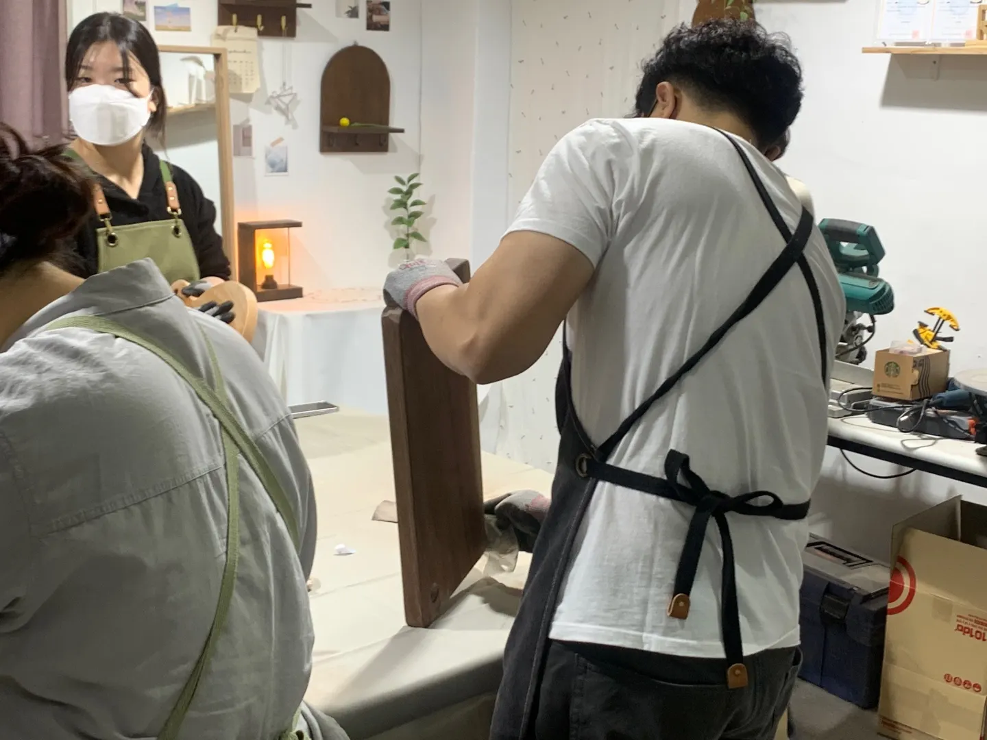 7시까지 도착하여 강사님 설명듣고 바로 시작! 시간과 인원관계상 도마만들 나무종류와 모양은 먼저 정해서 기본 모양은 만들어져 있었네요~! 그래서,,, 바로 끝나지 않을것 같던 사포질 시작