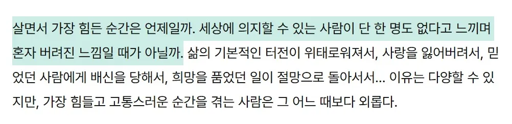 누군가의 고통을 함께 들어줄 수 있는 관계가 있다는 건 분명한 행복이다.”