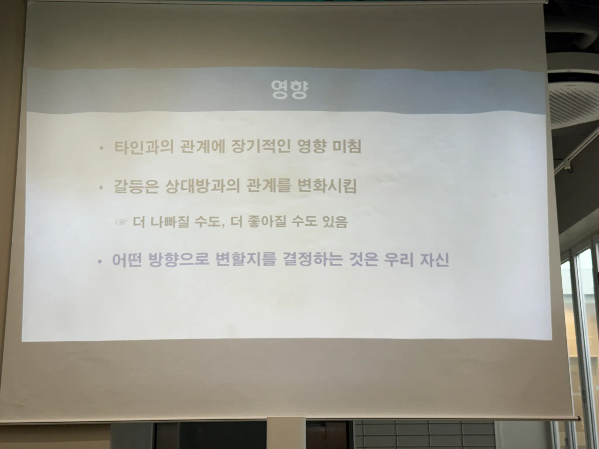 갈등을 어떻게 건강하게 다루느냐였습니다