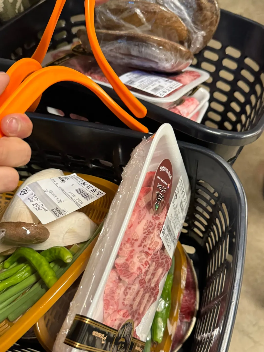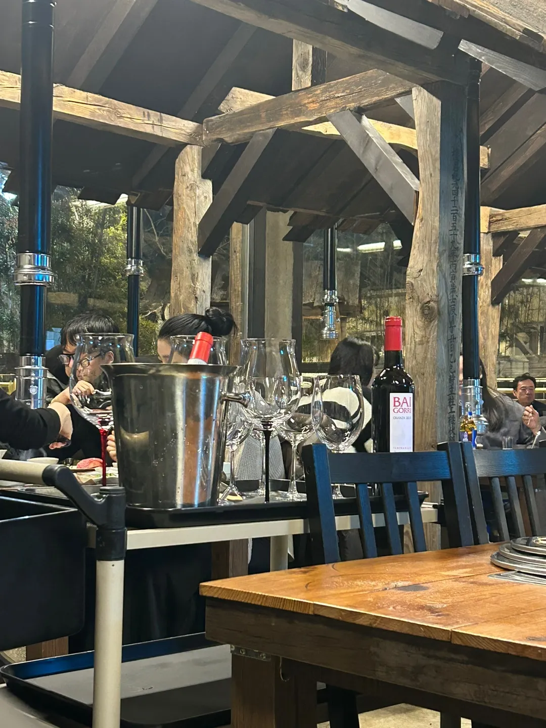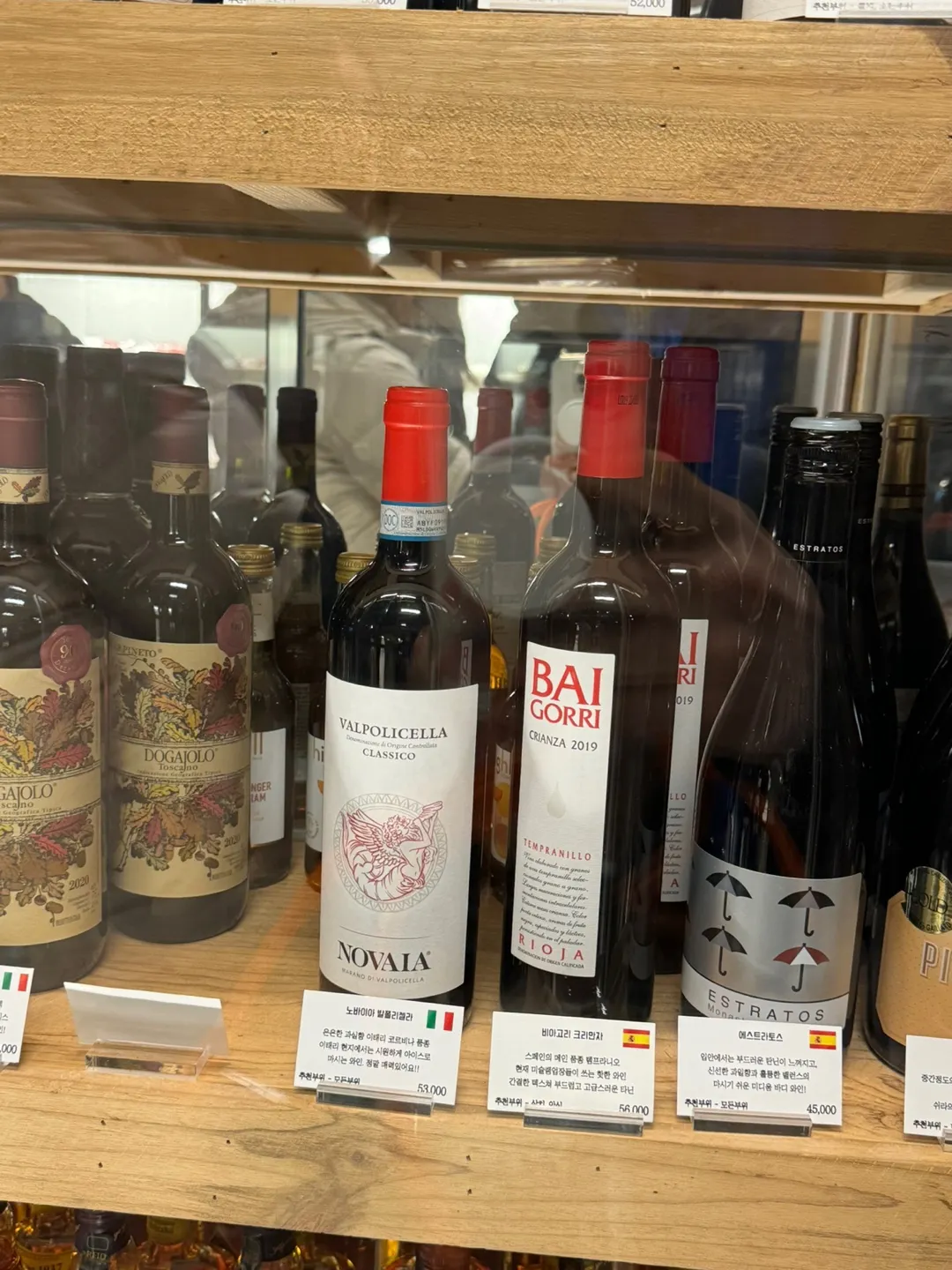 스무고개는 팩에 담긴 고기를 직접 골라서 먹는 시스템이어서  고기와 야채, 치즈를 고르고 곁들일 와인도 2병 골랐습니다~ 이제 고르고 자리로 착석!