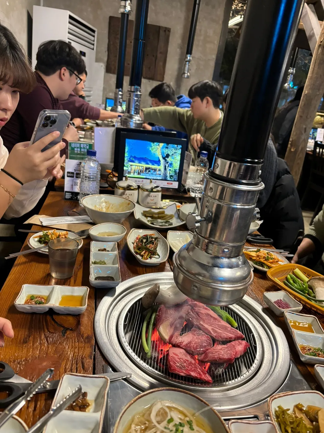 금강산도 식후경이라고 테이블 마다 골라온 고기를 구워먹기 시작했답니다~