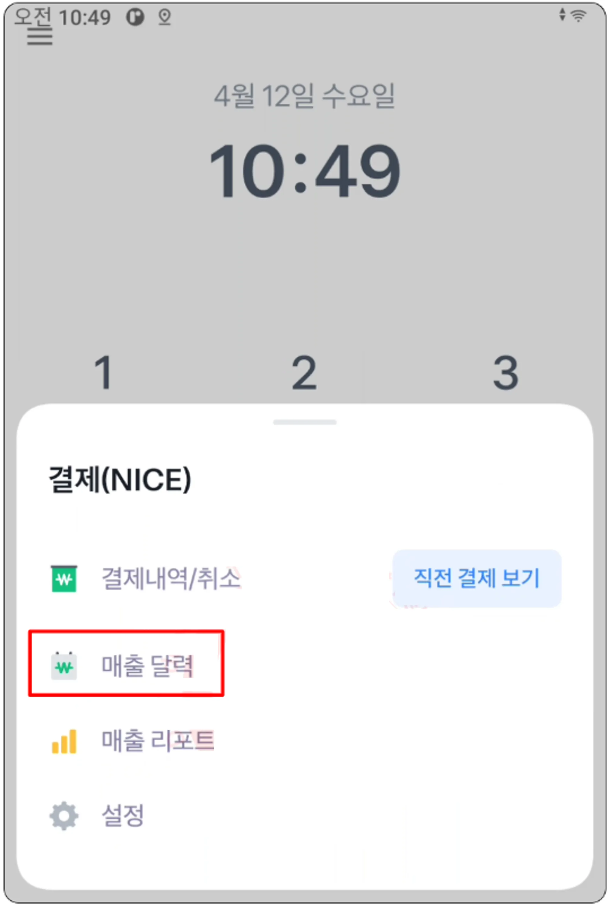 2. 하단에 나타나는 매출 달력 버튼을 클릭해주세요.