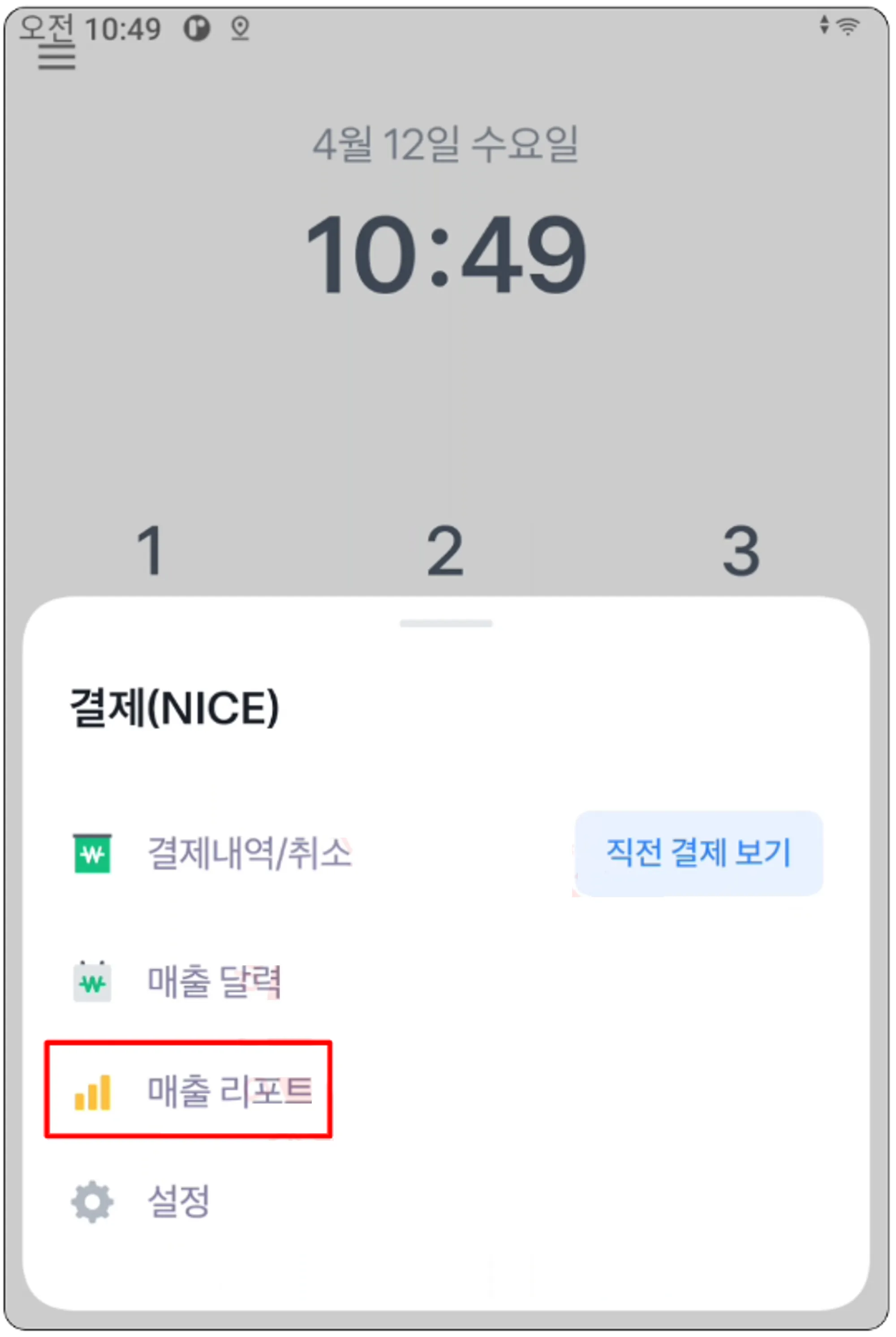 2. 하단에 나타나는 매출 리포트 버튼을 클릭해주세요.