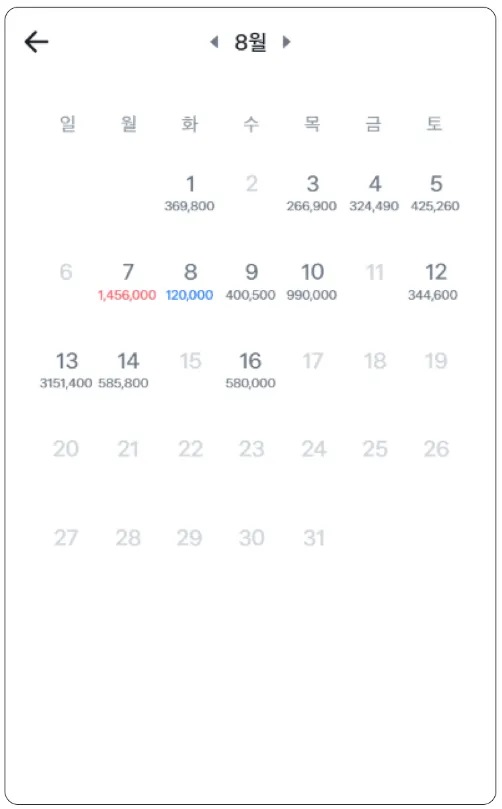 3. 현재 월의 일간 매출 금액들을 확인할 수 있어요.