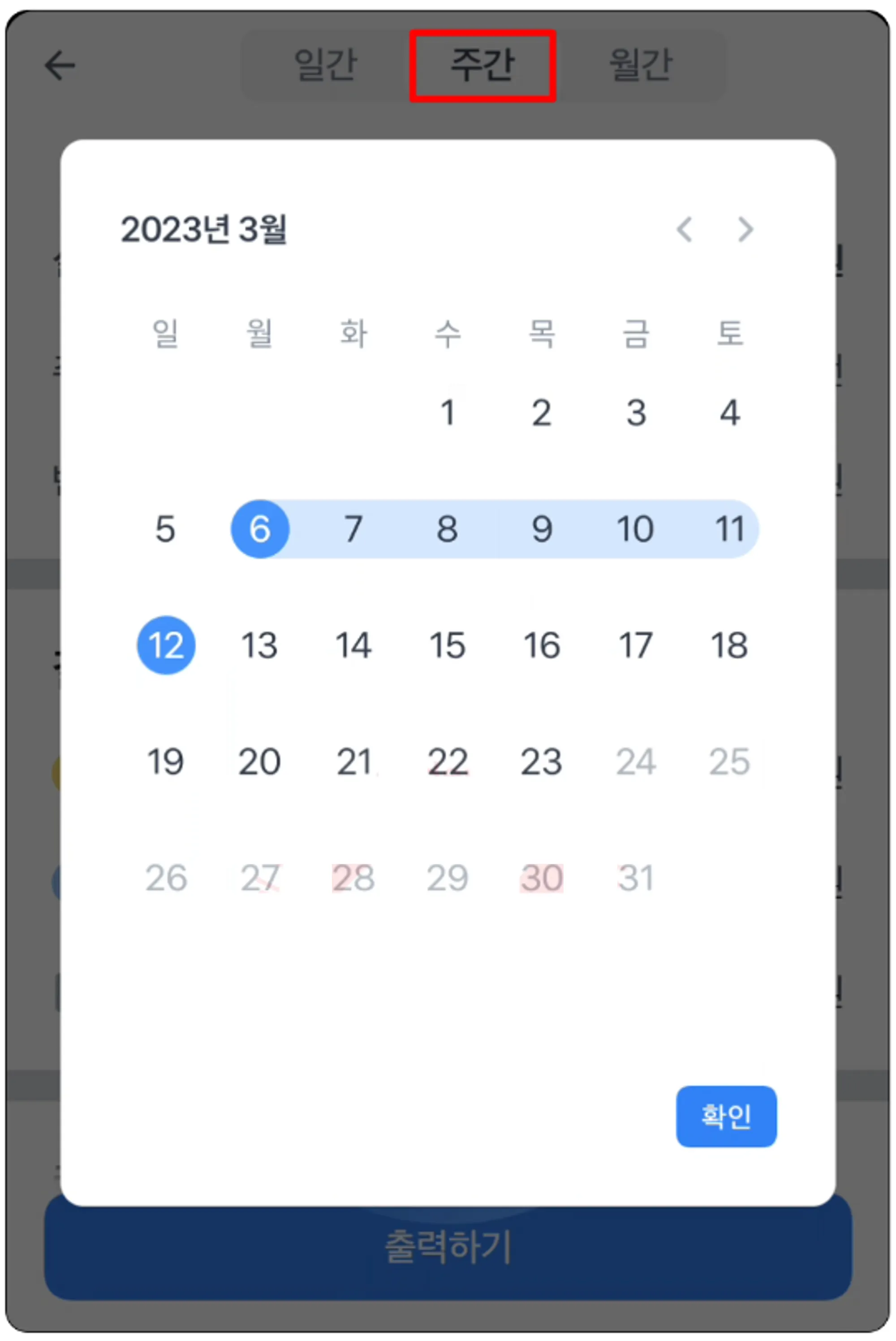 주간으로 마감된 주를 조회할 때, 1주일 동안의 총 데이터를 보여드려요.