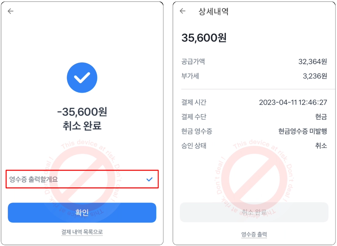 9. 취소 완료 영수증은 기본으로 출력돼요.