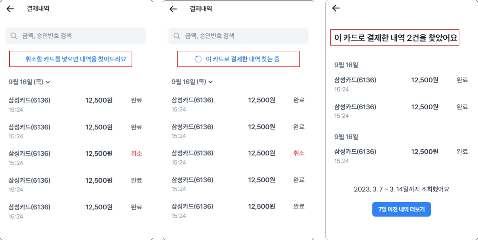 결제한 카드를 넣어 취소하기
