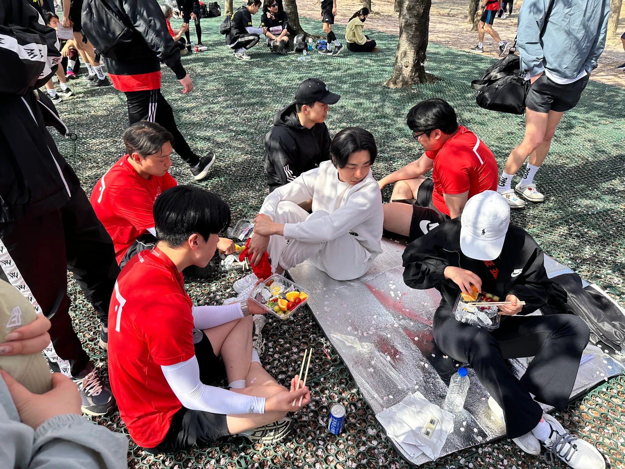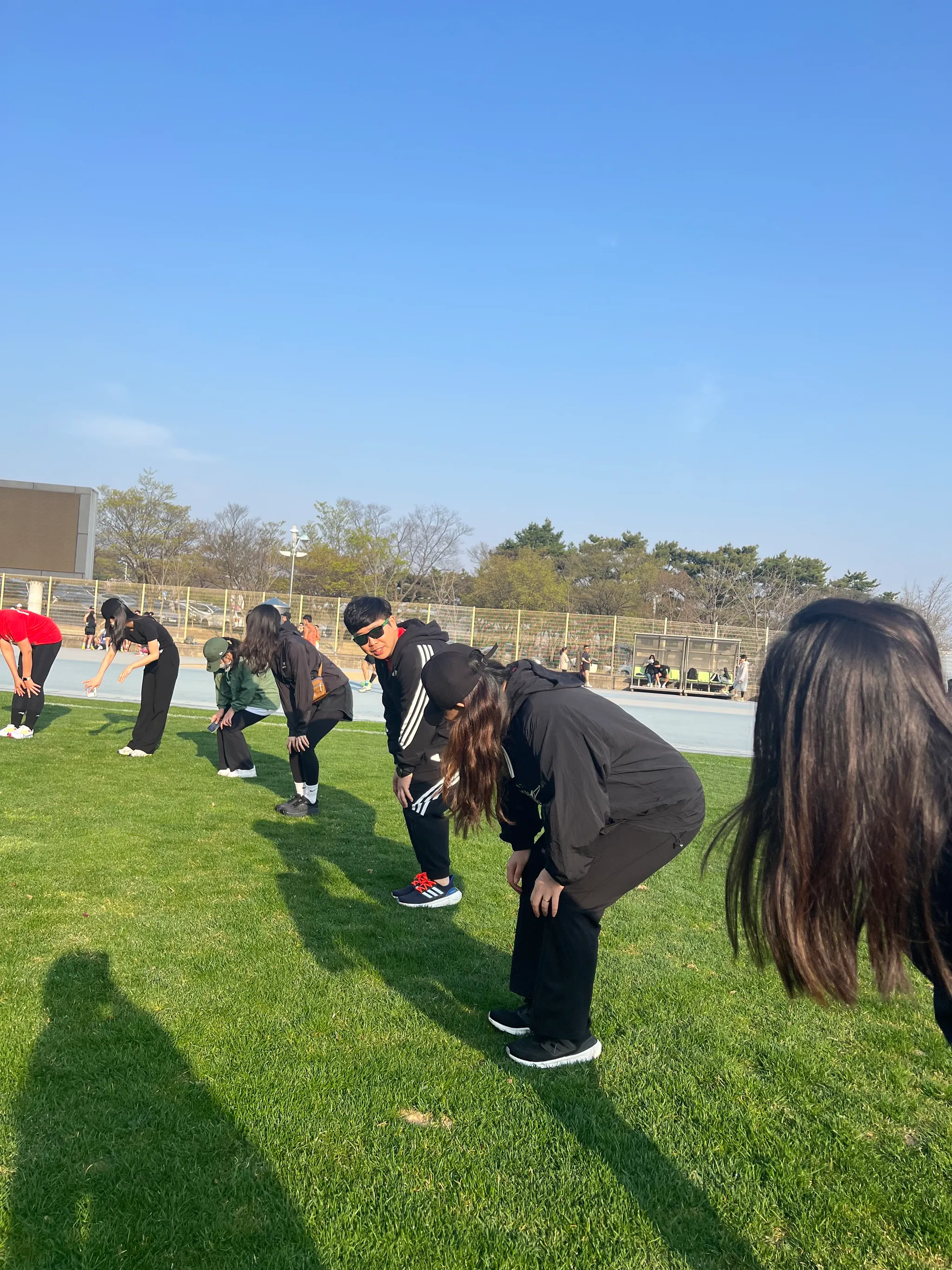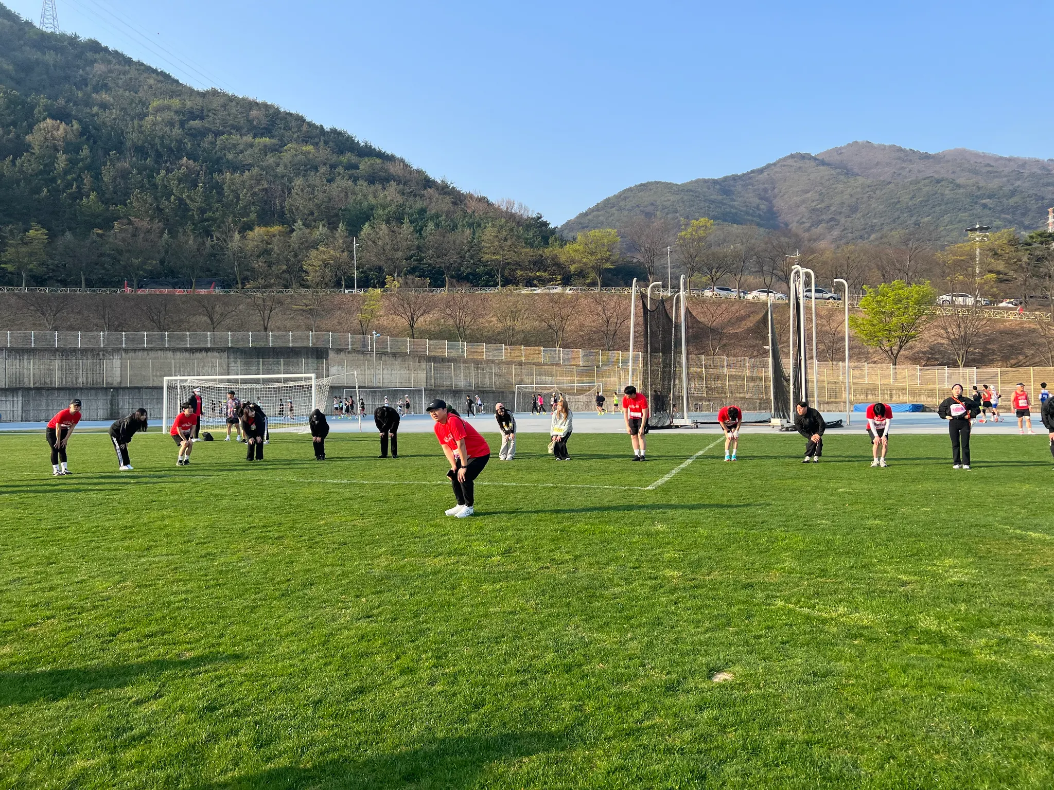 아침 7시부터 부지런히 다 모여서 열심히 뛸 준비 중 !