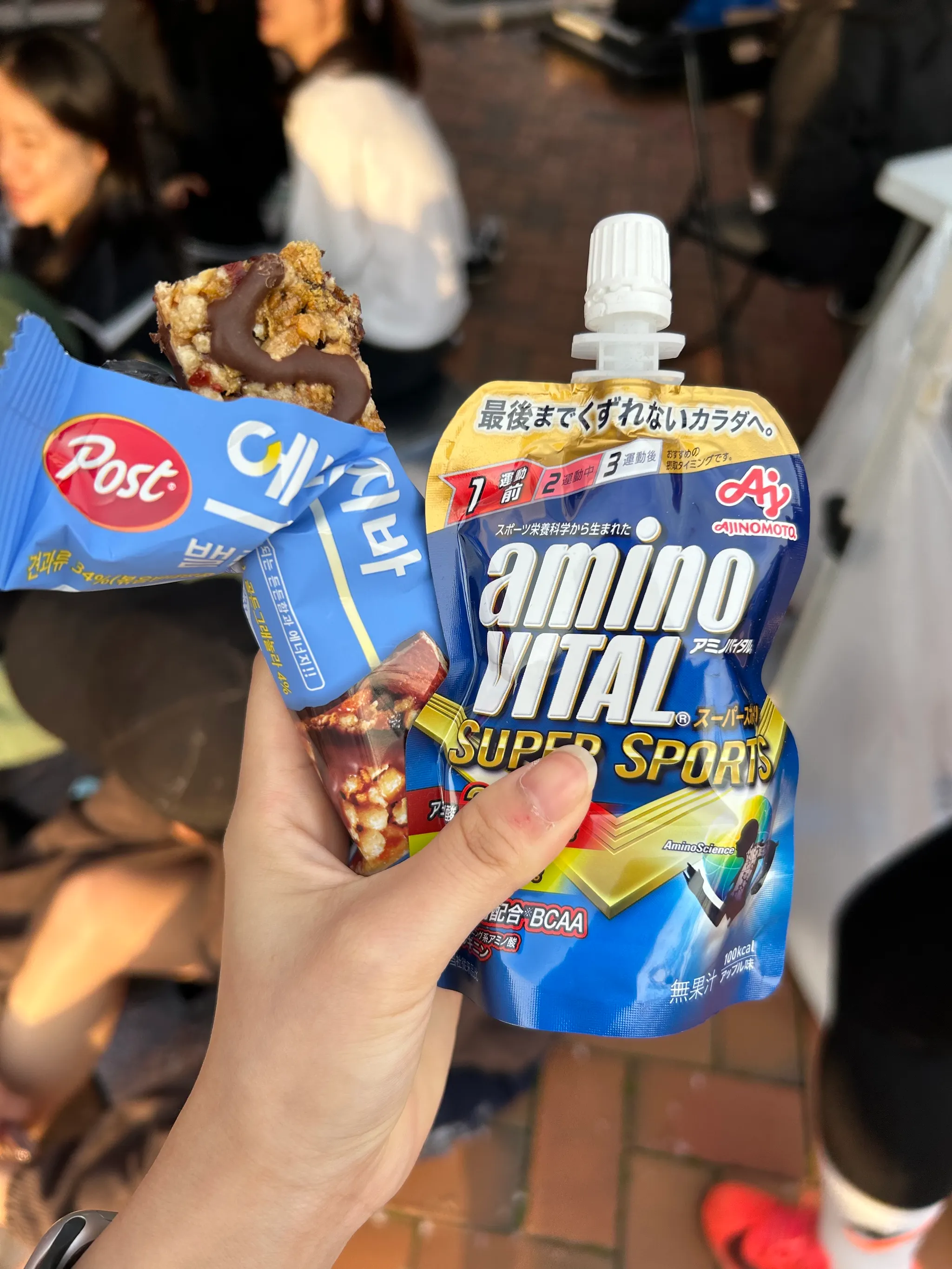 일단 좀 먹고 ,, 회사에서 준비해주신 에너지바  를 먹으며