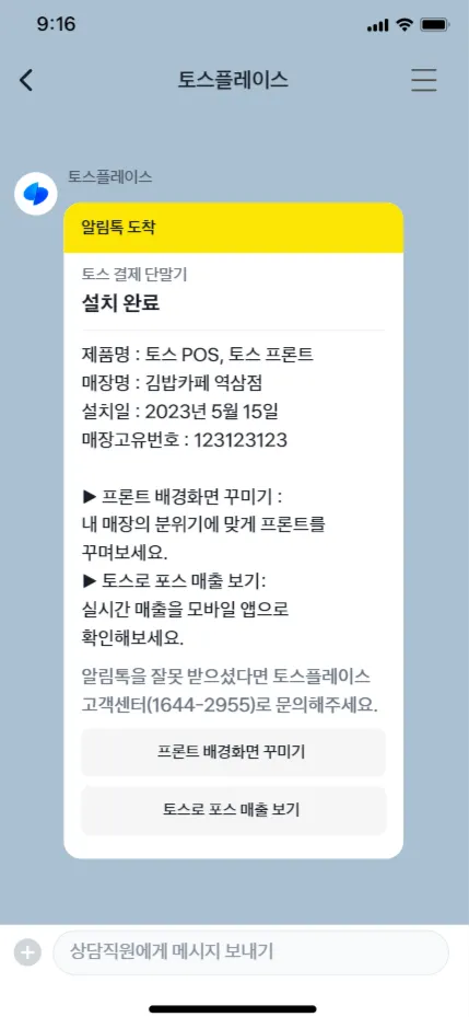 단말기 설치가 완료되면 알림톡이 발송돼요.
