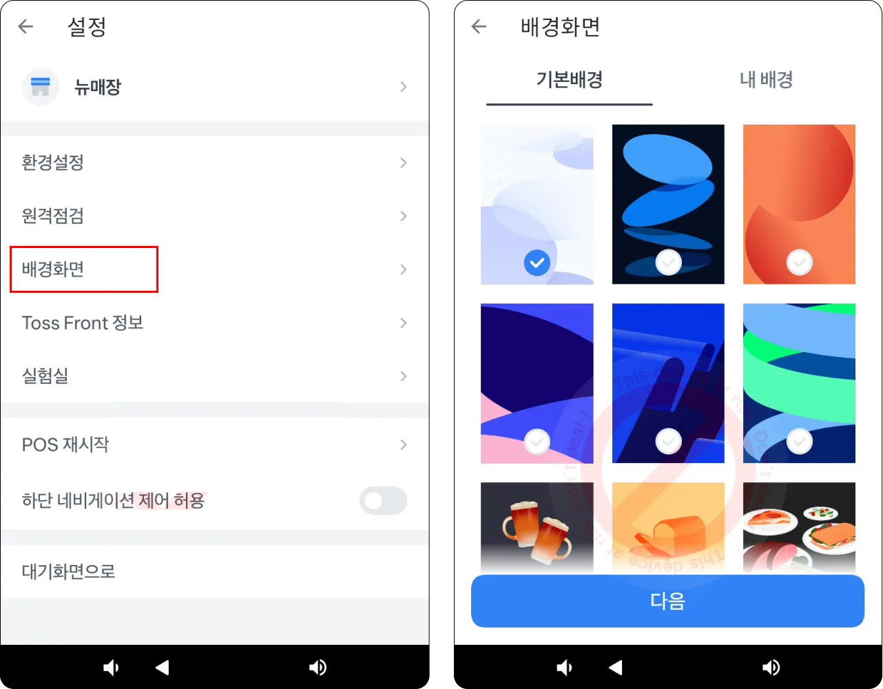 변경 할 배경화면 선택 후, 하단 다음 버튼을 눌러주세요.