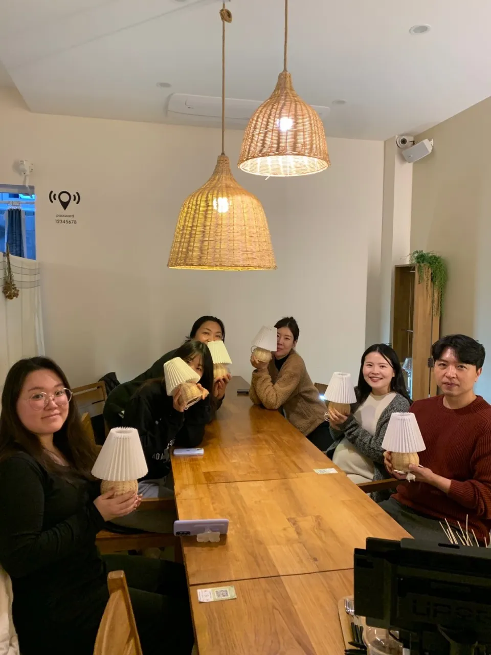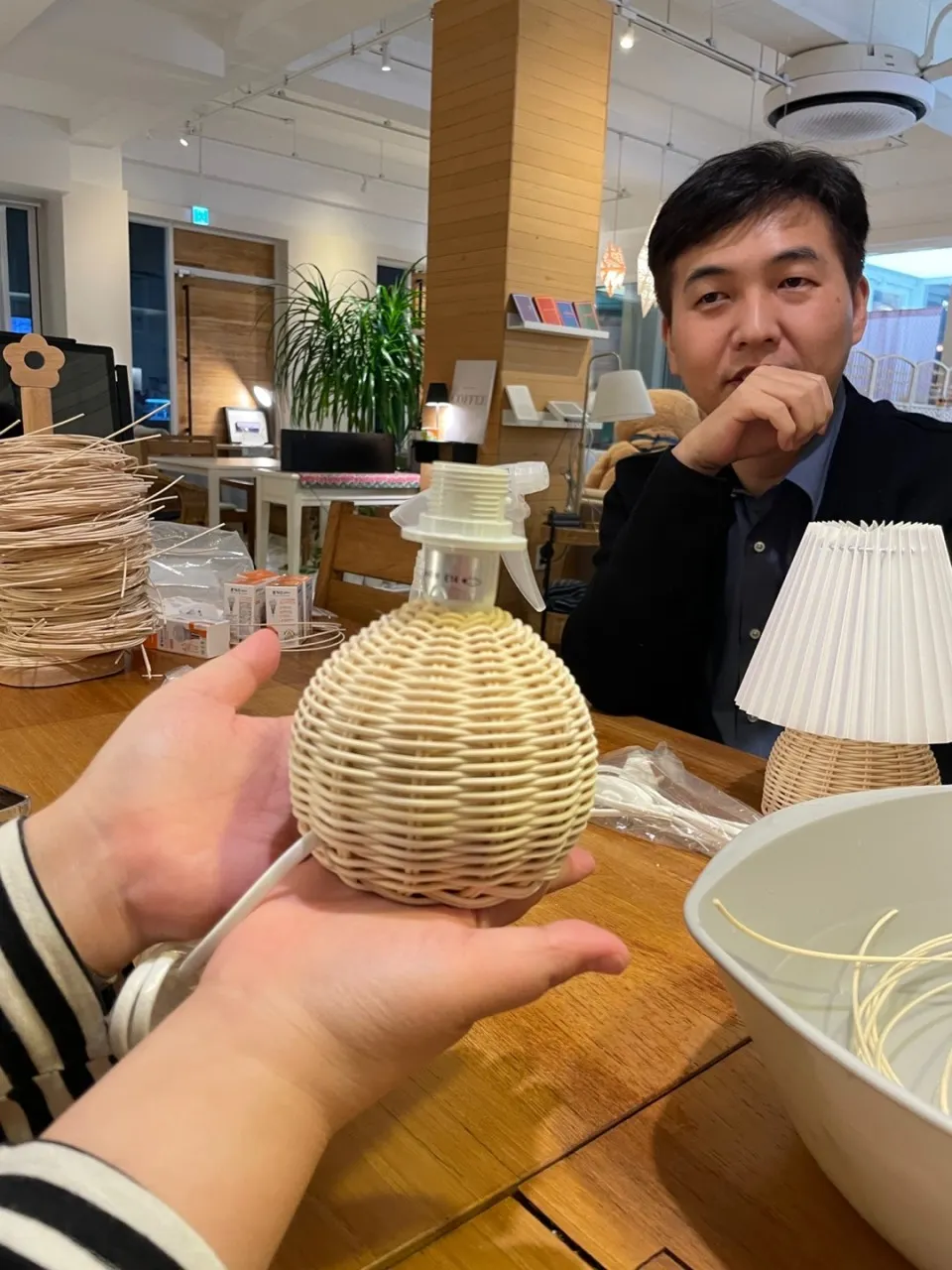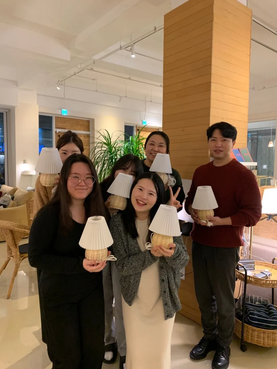 각자 자기가 만든 라탄 조명을 들고 사진을 찍어봅니다...