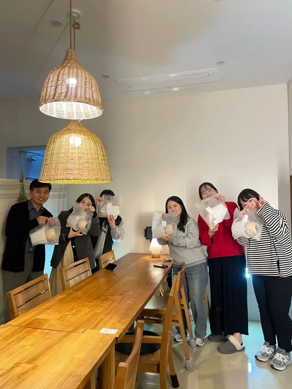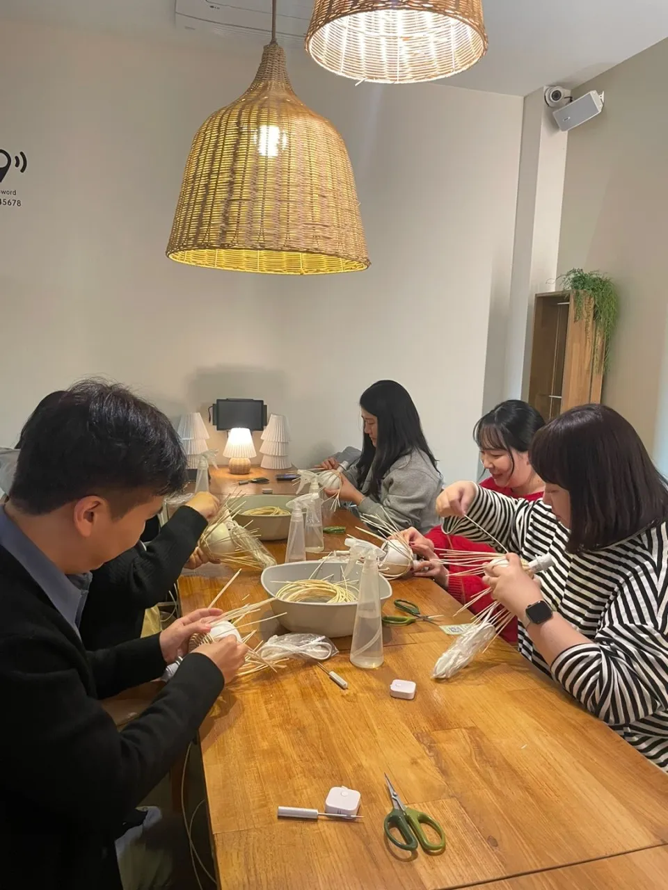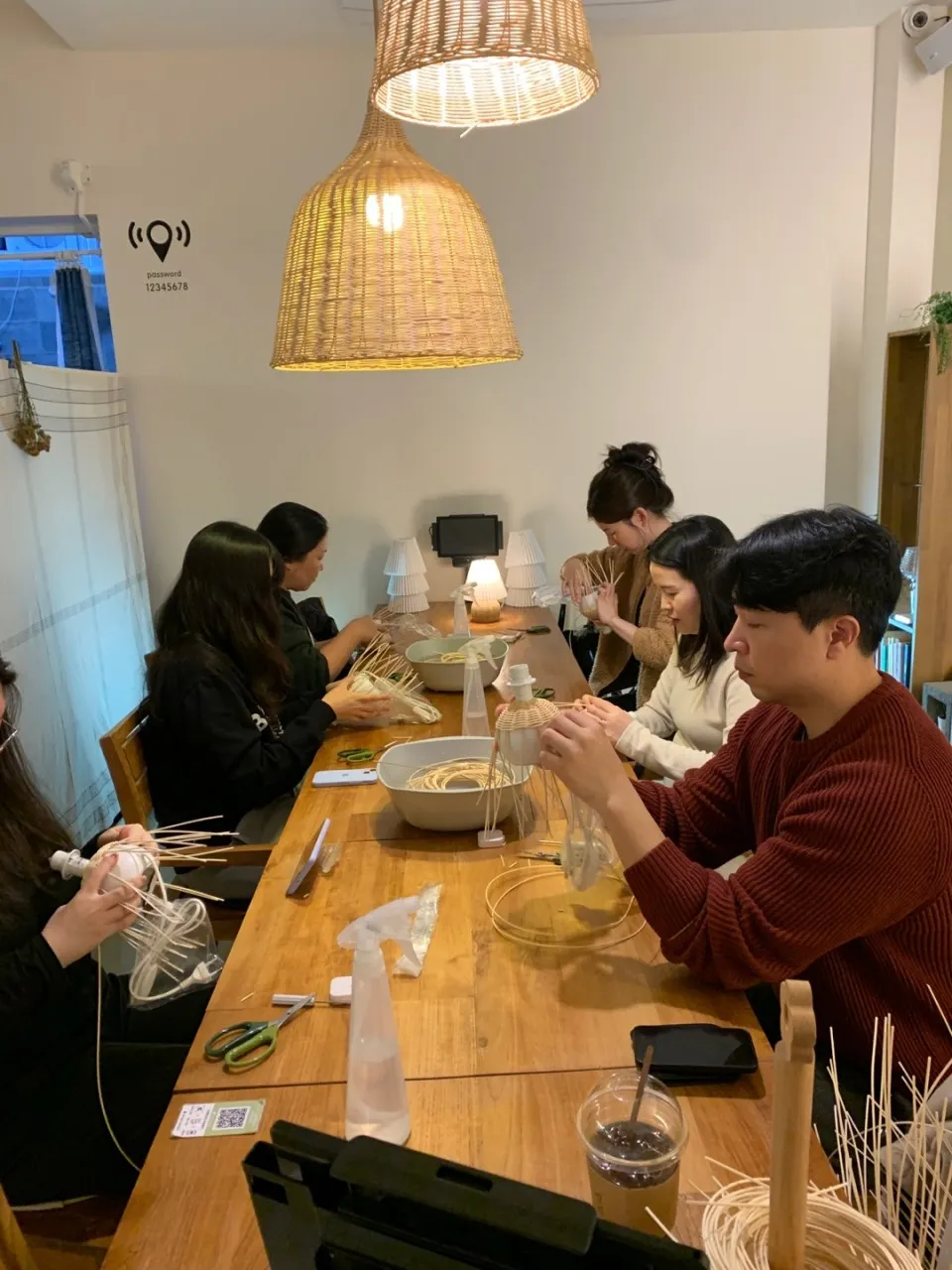각자 자기가 만든 라탄 조명을 들고 사진을 찍어봅니다...