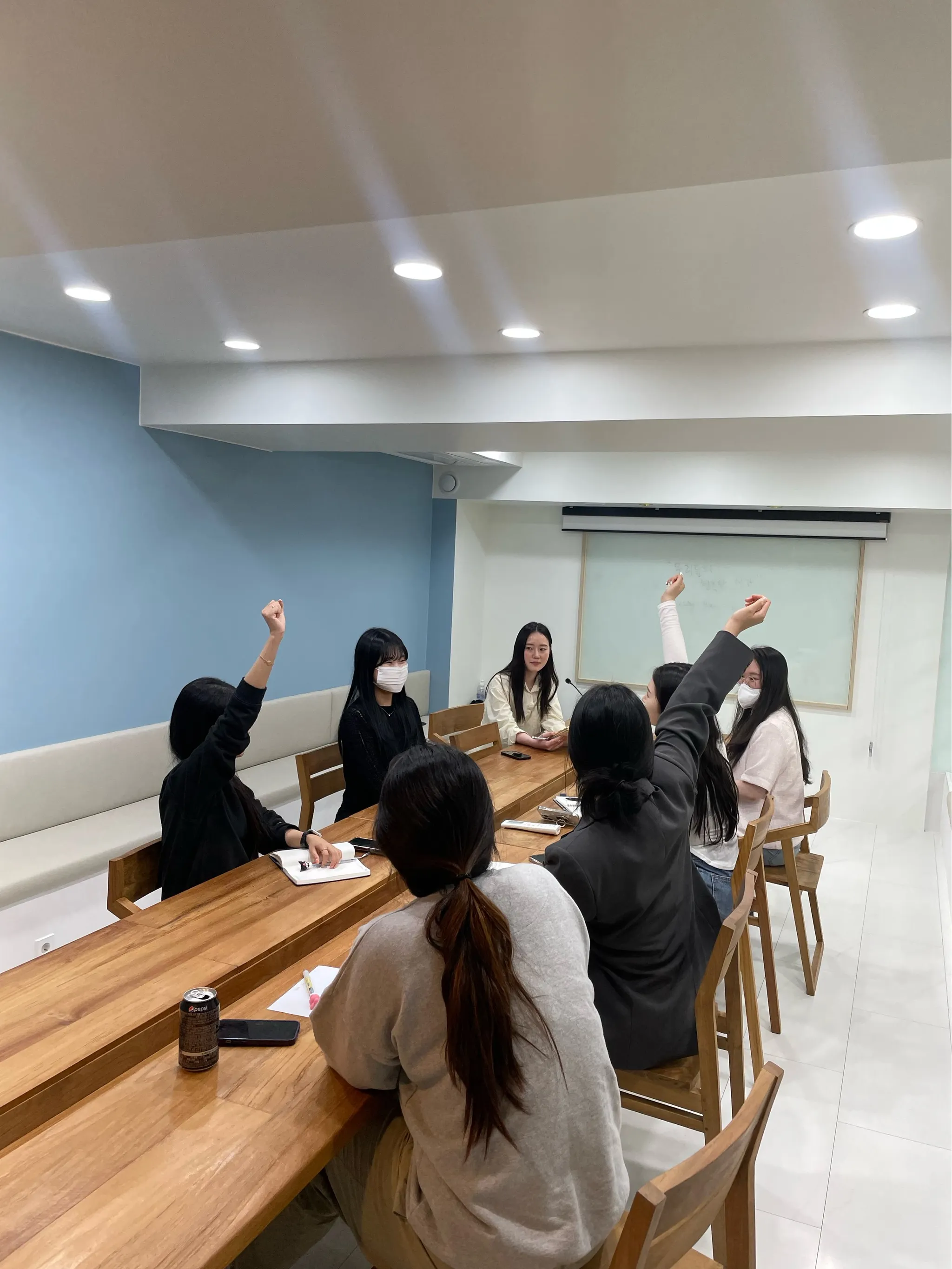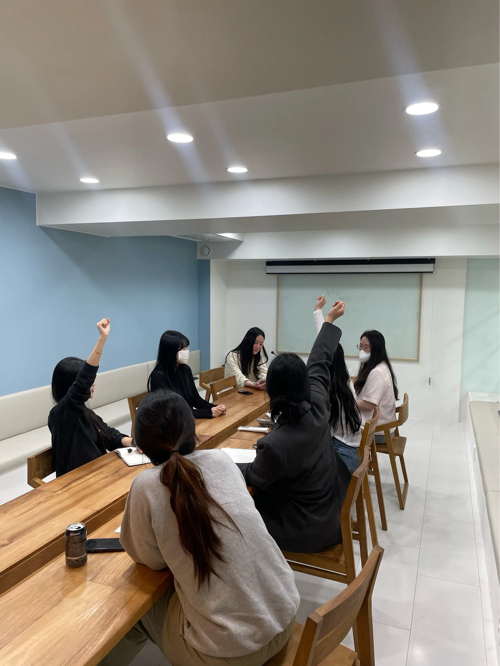 찬반 투표를 진행했는데.. 공교롭게 기획 1팀만 손을 번쩍 들고 있네요 하하하