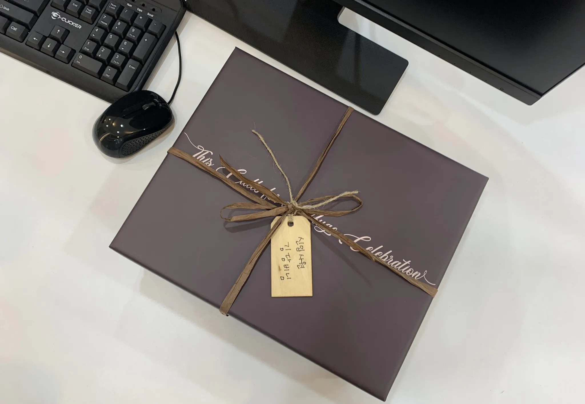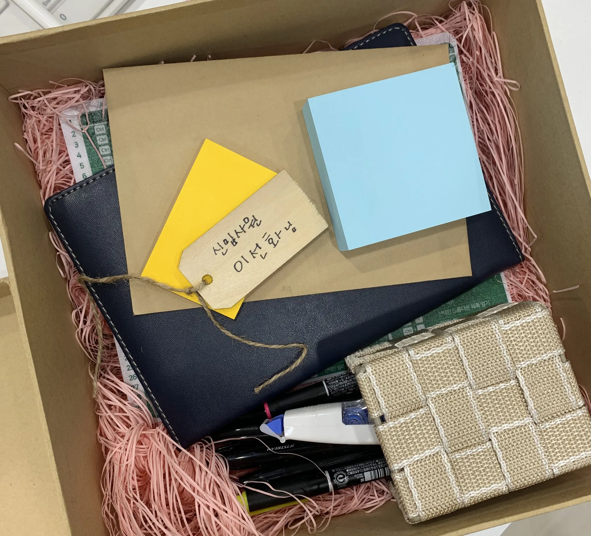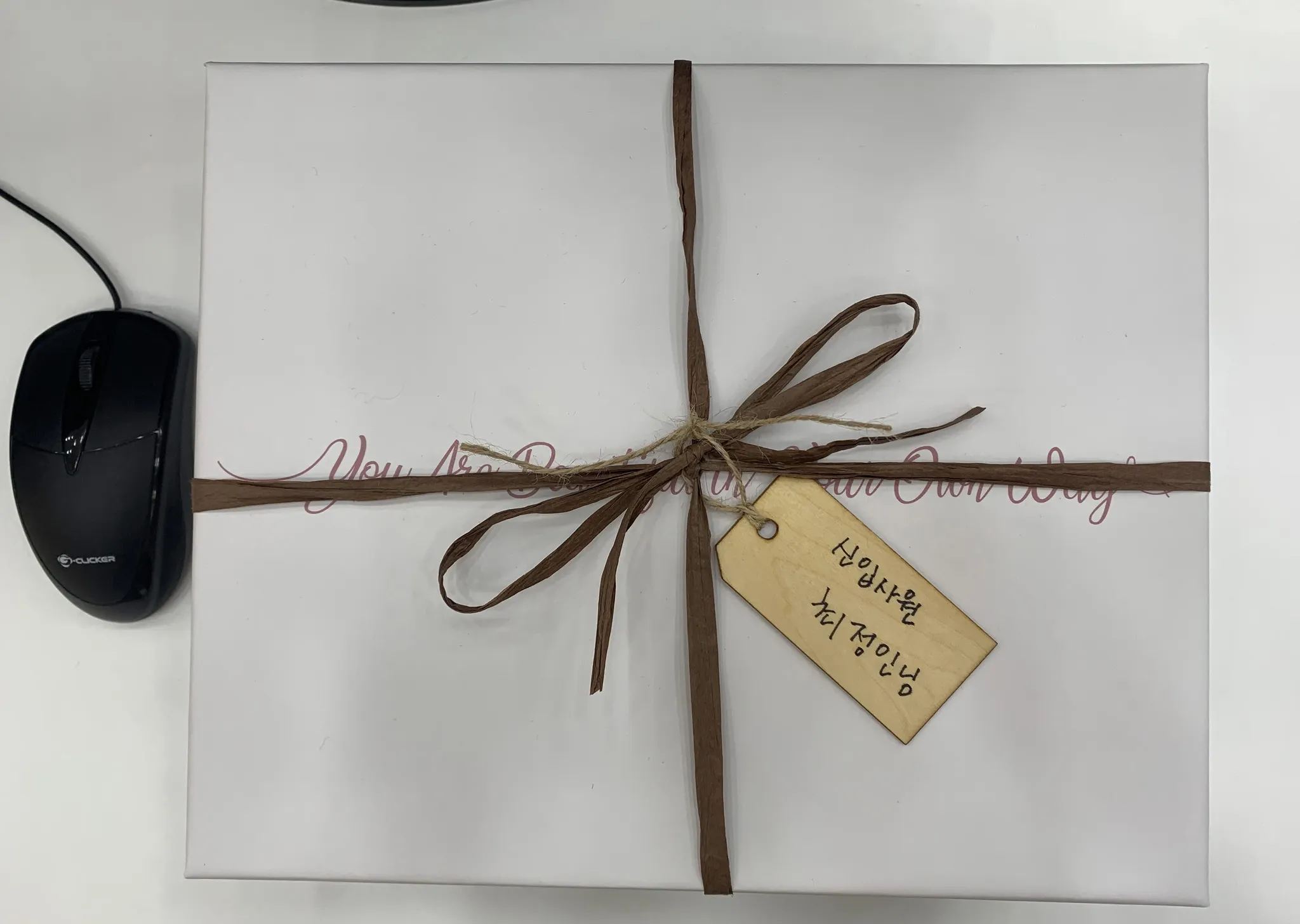 → 마케팅팀 김담비님과 동기인 최정인님 책상에도 이렇게 예쁜 상자로 놓아두었습니다.