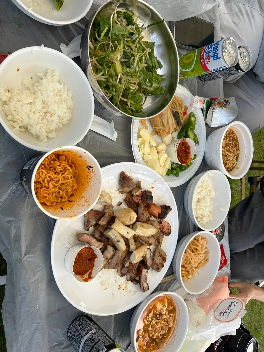 캠핑장에서 삼겹살을 먹는데 라면이 없다 ? 말도 안되잖아요 ?